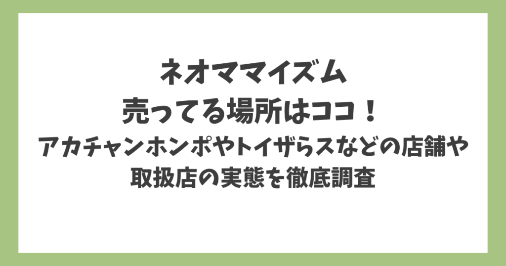 ネオママイズムが売ってる場所はココ!アカチャンホンポやトイザらスなどの店舗や取扱店の実態を徹底調査