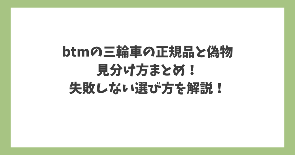 BTMの三輪車を購入しようと思ったとき、「これって正規品?」「安すぎるけど大丈夫?」と不安に感じる方も多いですよね。 見た目がよく似た商品も出回っているため、知らずに選んでしまうと、安全性や耐久性に不安がある商品を購入してしまう可能性もあり... 子育て