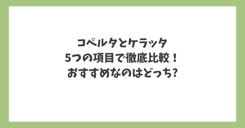 コペルタとケラッタを5つの項目で徹底比較!おすすめなのはどっち?