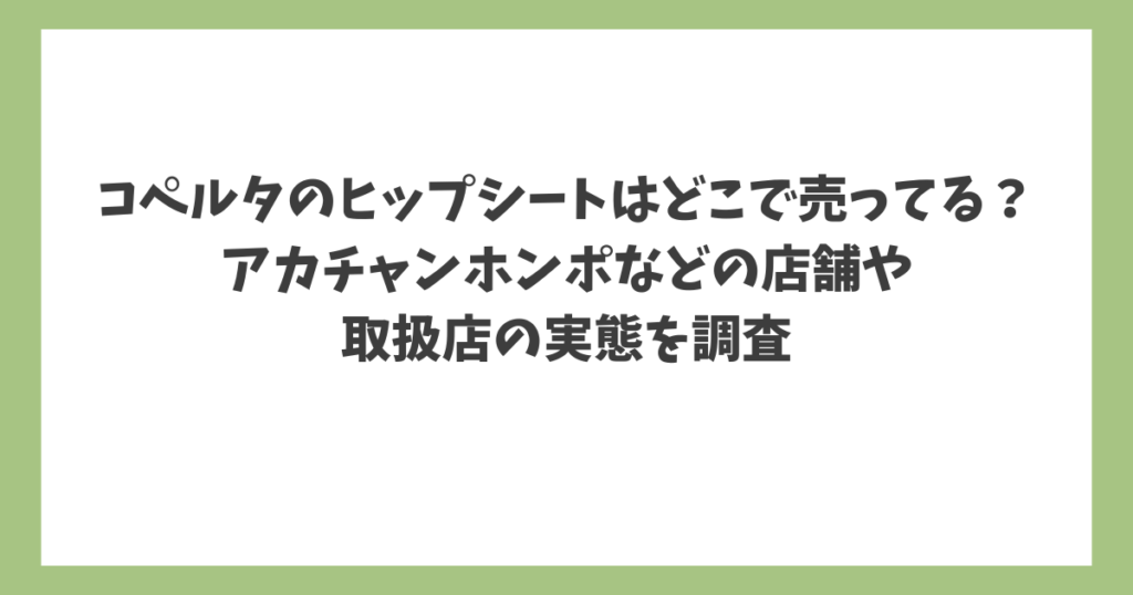 この記事では、コペルタのヒップシートがどこに売ってるかを調査した結果をまとめています。 実店舗や通販サイトを調べたところ、コペルタのヒップシートは現在実店舗での取り扱いはなく、オンライン限定での販売になっています。 西松屋やアカチャンホン... 子育て